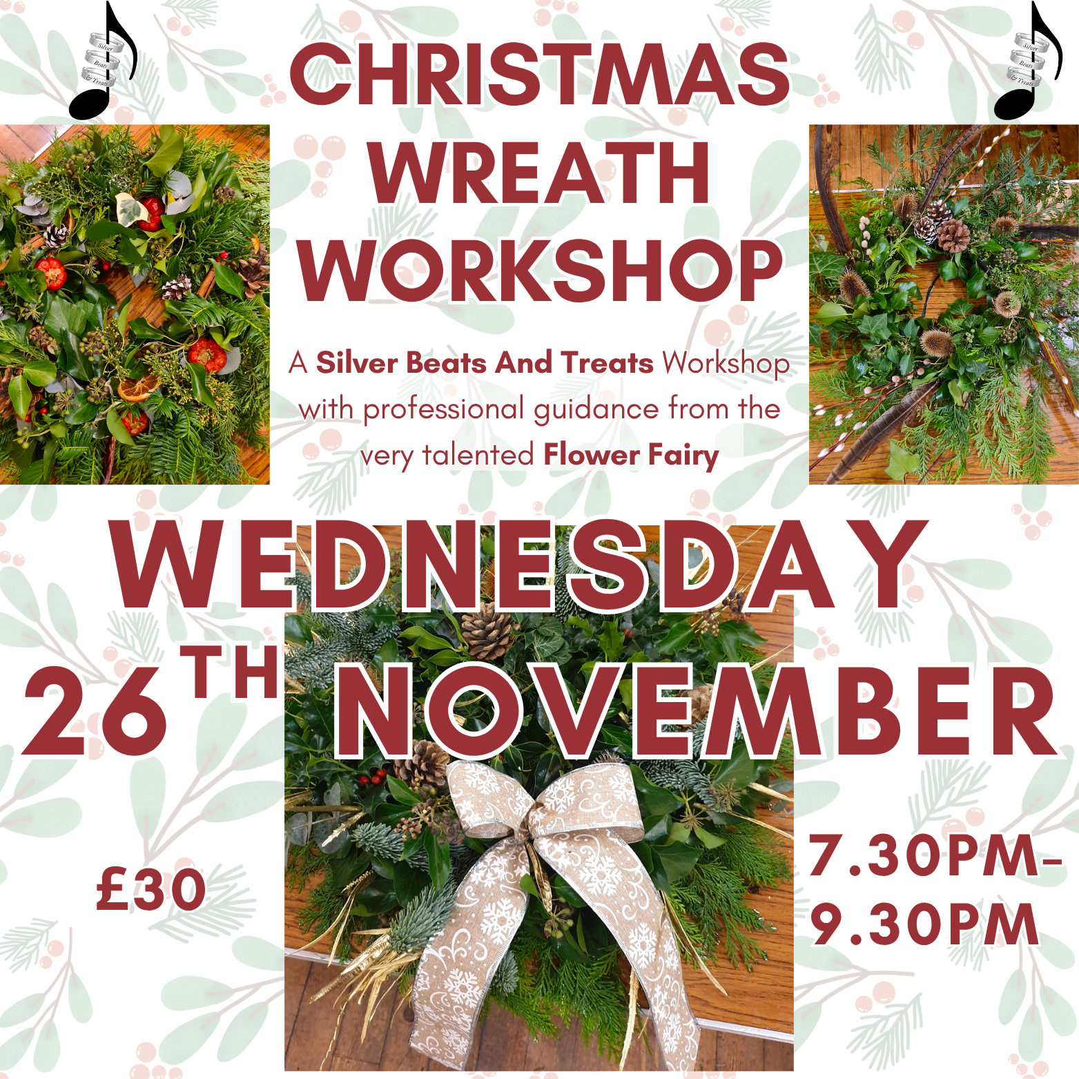 With professional guidance from the very talented Flower Fairy – Join us for an evening of wreath making. Make your own beautiful wreath using fresh greenery, and enjoy some festive nibbles. With a fundraising raffle too!